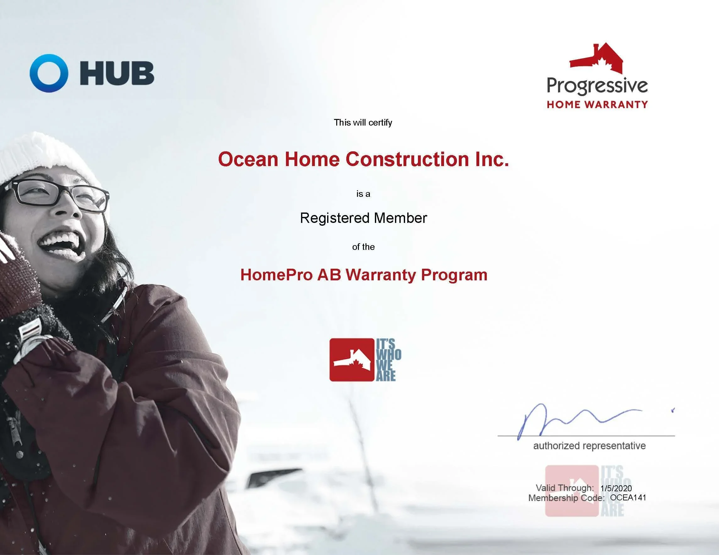 Every custom home built by the Ocean team is covered by the Alberta Progressive Home Warranty.